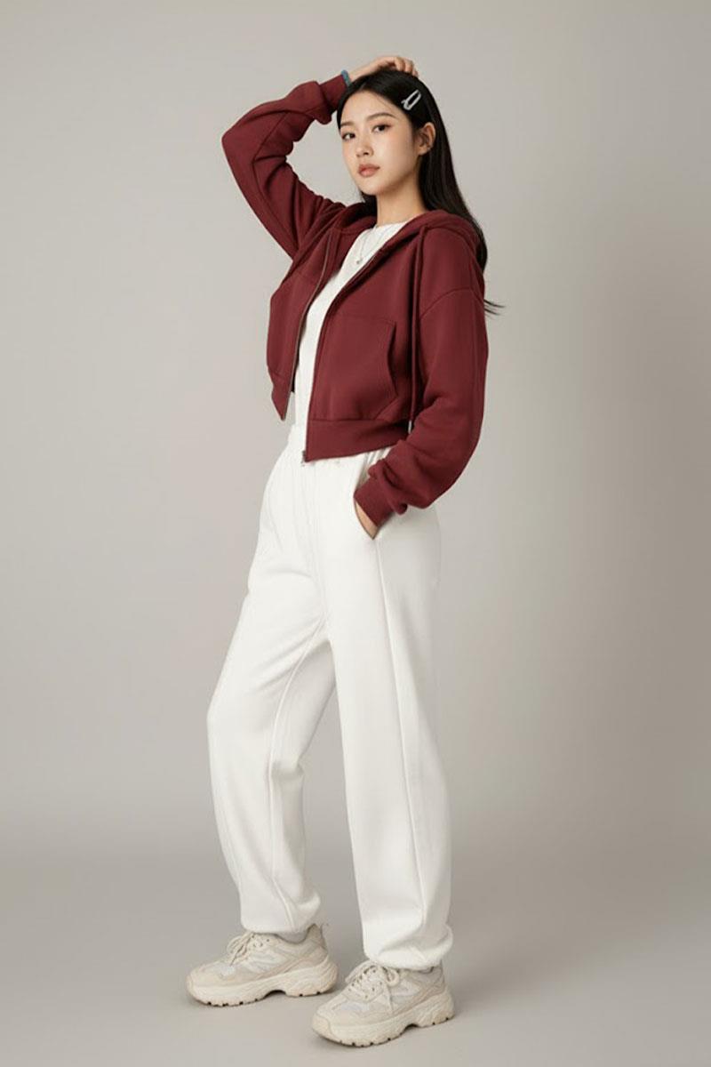 Bordo Crop Top Kalın Kumaş Kapüşonlu Crop Hırka