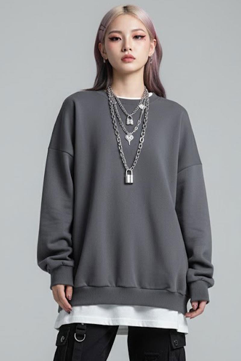 Düz Füme Orta Kalınlıkta Kumaş Oversize Unisex Sweatshirt