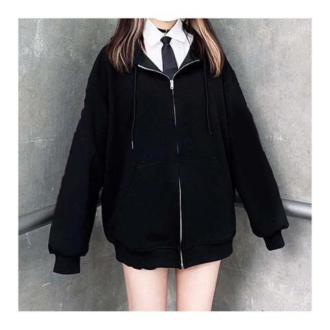 Düz Siyah Kalın Kapüşonlu Y2K Oversize Unisex Hırka