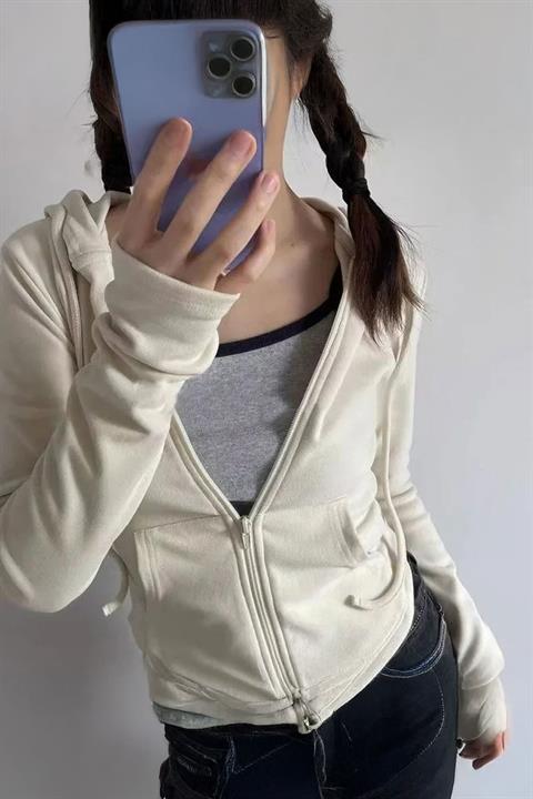 Ekru 3 İplik Şardonsuz Y2K Hırka