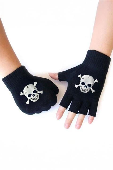 Gotik Skıll Unisex Kesik Parmaklı Eldiven (KEL067)