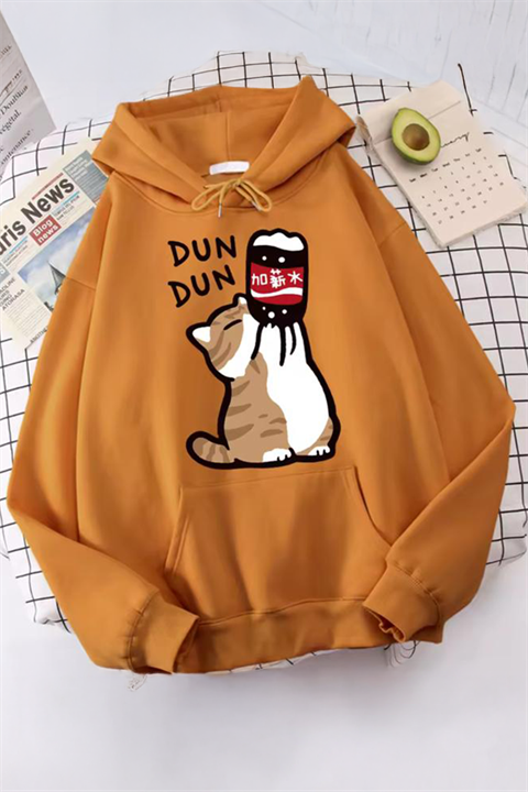 Karakedi’nin Turuncu Cat Drink Dun Dun Y2K Kapüşonlu Unisex Sweatshirt modeli, eğlenceli kedi baskısı ve canlı rengiyle enerjik bir tarz sunar. Y2K estetiğini yansıtan kapüşonlu ve unisex tasarımı sayesinde günlük kombinlerde hem rahatlığı hem de dikkat çekici bir görünümü bir araya getirir.